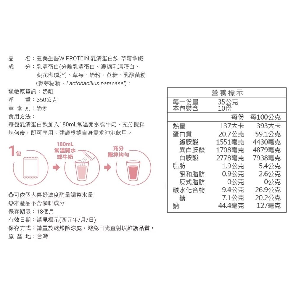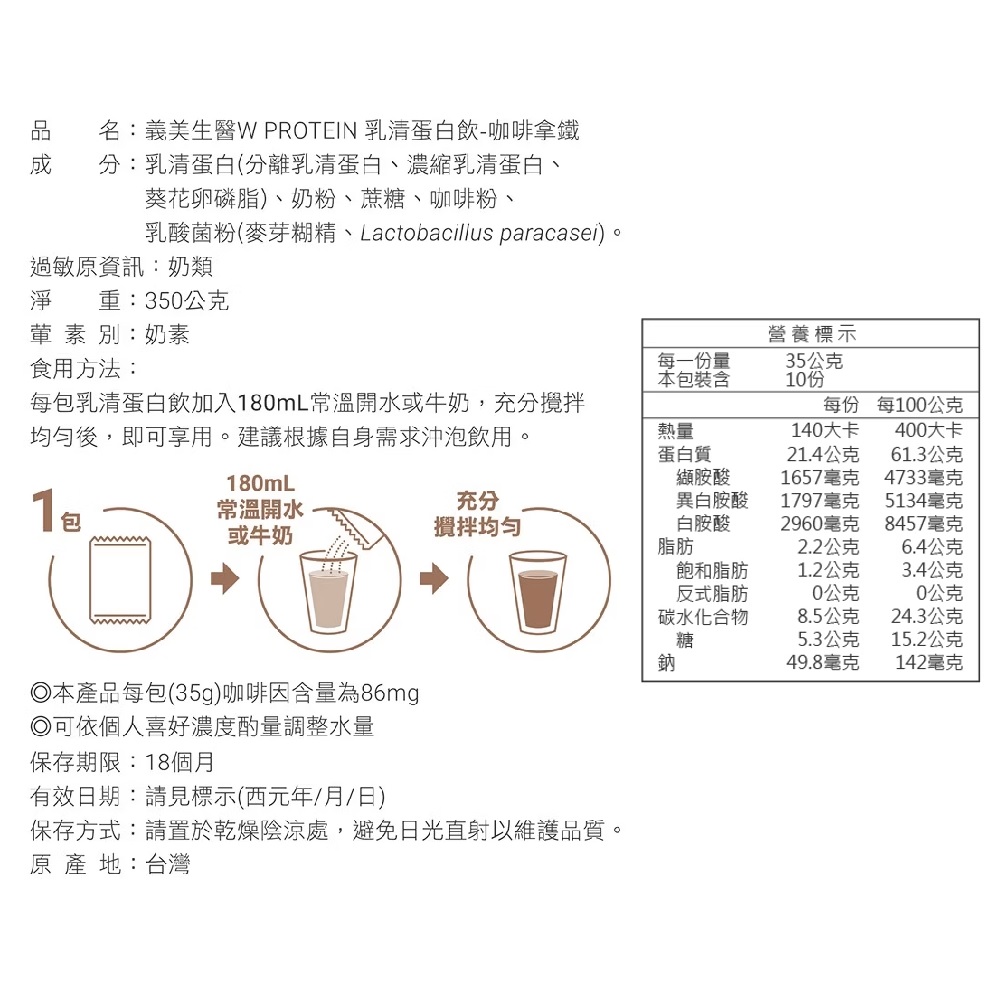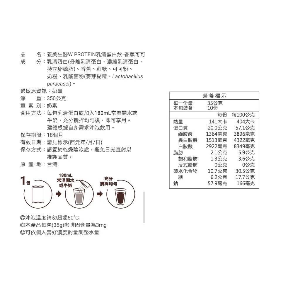 義美生醫 W PROTEIN乳清蛋白飲任選4盒(35g*10包/盒;品牌大使李雅英、無代糖、高蛋白)